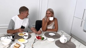 Couple Having Breakfast Together In Modern Kitchen Setting Videos