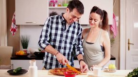 Couple Preparing Pizza Together In Modern Kitchen Videos