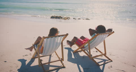 Couple Relaxing On Beach Resort With Digital Effects Videos