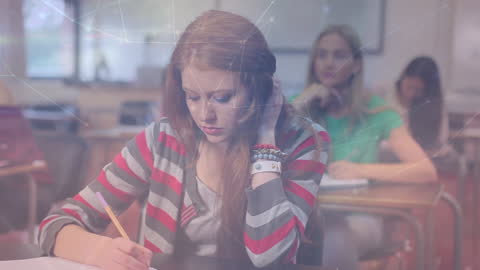 Couple Using Laptop Amidst Digital Network Interface Graph Videos