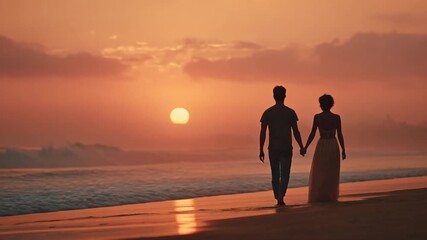 Couple Walking On Beach During Sunset With Wave Reflections Videos