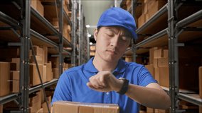 Courier Scanning Parcel In Warehouse Visualized With Global Network Videos