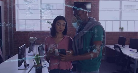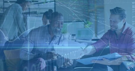 Coworkers Analyzing Data With Digital Graphs And Code Overlays Videos