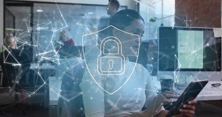 Coworkers Engaging In Office With Digital Network Overlay Videos