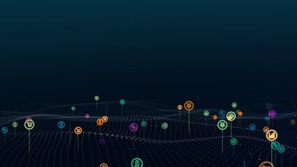 Cryptocurrency Symbols Over Global Blockchain Network Interface Videos