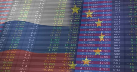 Currency Exchange And Stock Market Data Overlaying Global Flag Videos