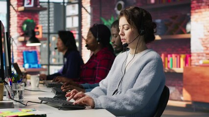 Customer Support Agent Assisting Client With Headset In Modern Office Videos