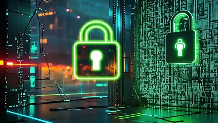 Cyber Security Concept With Green Digital Padlock And Code Display Videos