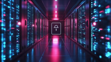 Cyber Security In Data Processing Server Room With Digital Icons Videos
