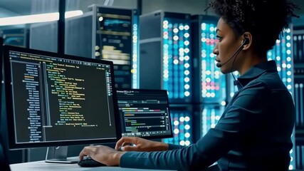 Cybersecurity Analyst In Server Room With Digital Data Visualization Videos