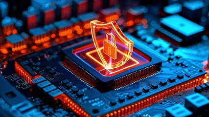 Cybersecurity Concept With Padlock On Microchip Videos