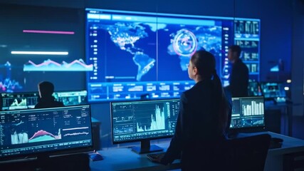 Cybersecurity Expert Managing Data In Modern Server Room Videos