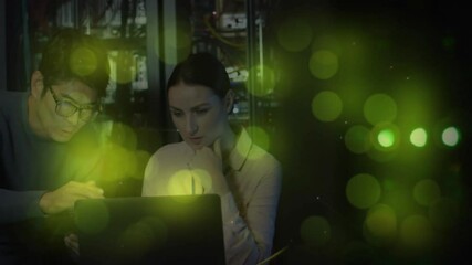 Cybersecurity In Modern Server Room With Data Overlay Videos