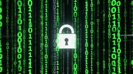 Cybersecurity Lock With Futuristic Data Flow Background Videos