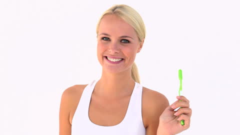 woman brushing teeth