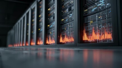 Data Analysis Process In Server Room With Cloud Connections Videos