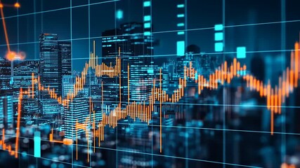 Data Analytics And Statistics Visualization Over City Lights Videos