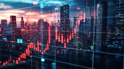 Data Analytics Overlay With Urban Skyline Videos