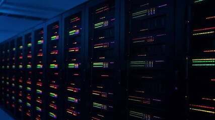 Data Animation Overlay On Modern Server Room Videos