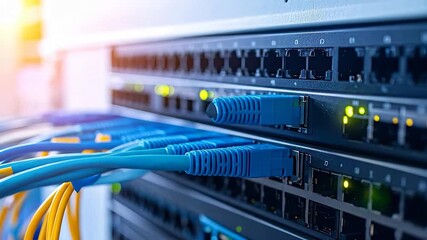 Data Center Servers With Glowing Network Grid Videos