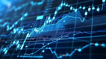 Data Charts And Stock Market Analysis On Blue Background Videos