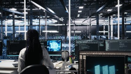 Data Engineer Analyzing Data In Server Room With Interfaces Animated Videos