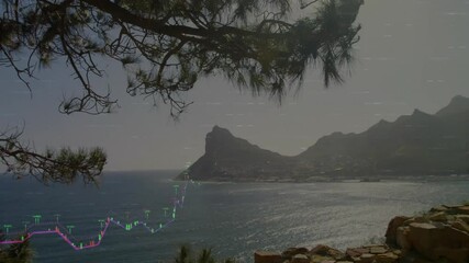 Data Flow Visualization Overlay On Serene Valley Landscape Videos