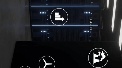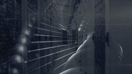 Data Processing Animation In Server Room With Digital Overlay Videos