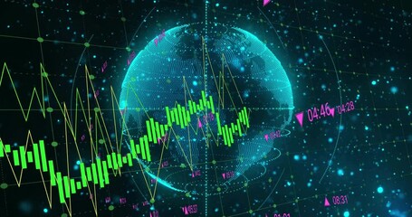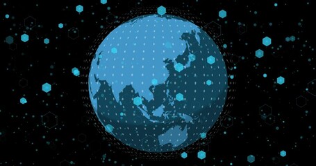 Data Processing Animation Over Globe On Black Background Videos