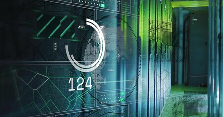 Data Processing Animation Over Server Room With Digital Interface Videos