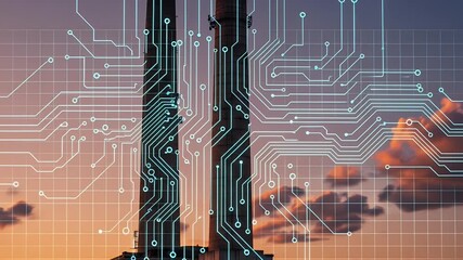 Data Processing Animation Overlaying Urban Cityscape Videos