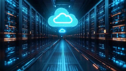 Data Processing Animation Overlooking Contemporary Server Room Videos