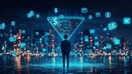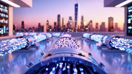 Data Processing Animation With Nighttime Cityscape Background Videos