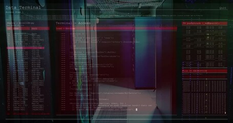Data Processing Animation With Overlaid Server Racks Videos
