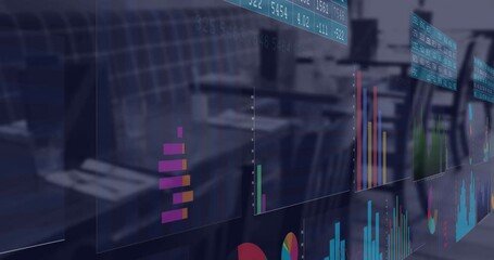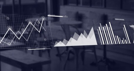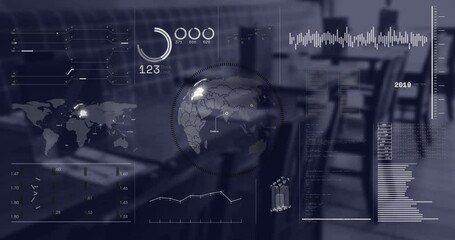 Data Processing Animation With Technology Interface In Office Cafe Videos
