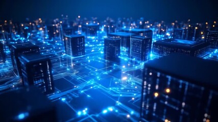 Data Processing Animation With Urban Cityscape Background Videos