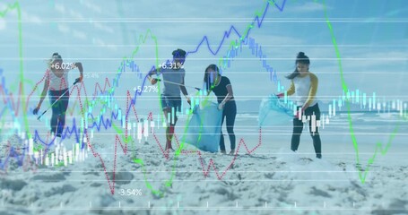 Data Processing Animation With Volunteers Cleaning Beach Videos
