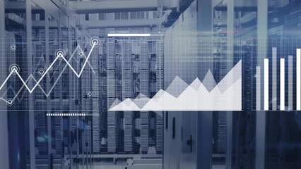 Data Processing In Modern Server Room With Digital Interface Elements Videos
