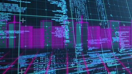 Data Processing Interface Over Cityscape With Global Elements Videos