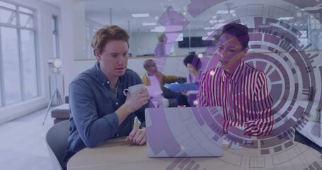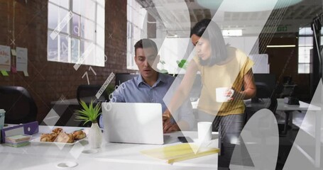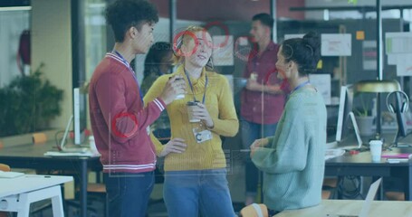 Data Processing Overlay On Colleagues Collaborating In Modern Office Videos