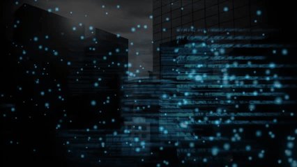 Data Processing Visualization Over Futuristic Cityscape Videos