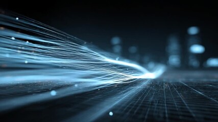 Data Streams Flowing Through Futuristic Digital Cityscape Videos