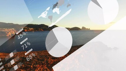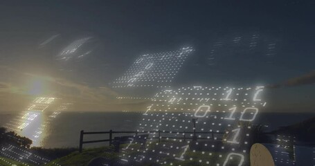 Data Visualization Over Sunset Coastal Landscape Videos