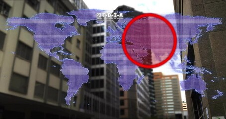 Data Visualizations Over Urban Skyline Highlighting Global Networking Videos