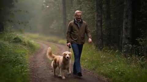 man walking dog