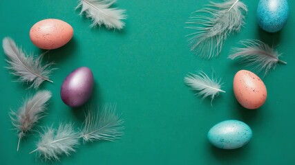 Decorative Easter Eggs On Vibrant Green Background Videos