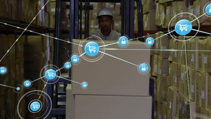 Delivery Man Loading Boxes With Digital Network Overlay Videos