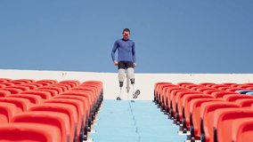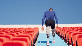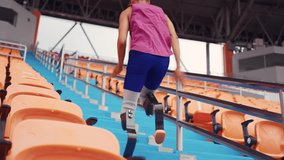 Determined Athlete With Prosthetic Legs Running Up Stadium Stairs Videos