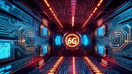 Digital 6g Technology Concept With Coding Background And Circuit Design Videos