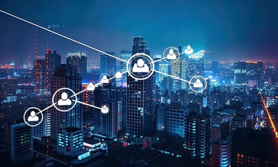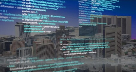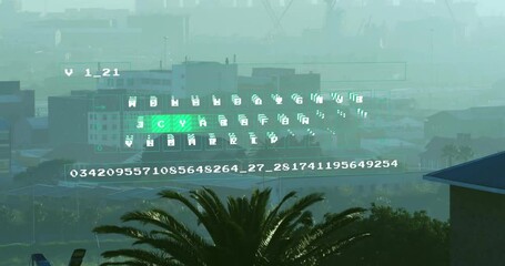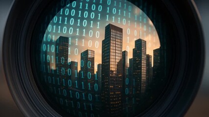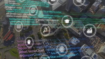 Digital Analytics And Data Code Overlay On Urban Landscape Videos